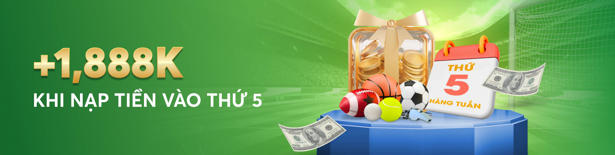 | Nhân đôi phiếu nạp lần đầu mỗi Thứ 5 | 1,888,000 VND | 15 Vòng | - Tính 100%: Thể Thao (loại trừ Thể Thao Ảo, E-Sports, Volta, Bóng Đá GS, Keno, Quay Số, Number Game, V Gaming). - Tính 20%: Nổ Hũ (Slot của ncc Techplay), Lô Đề (Truyền Thống/3 Miền), Bắn Cá (Techplay). |